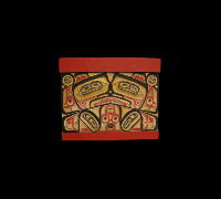 Wall panels are contemporary art pieces carved in many shapes and sizes. Some wall panels are based on traditional carved and painted surfaces such as interior screens, house fronts, and bentwood box designs. Odin Lonning's cutout panels portray Tlingit stories and realistic animal shapes. |
