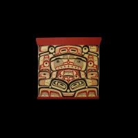 Wall panels are contemporary art pieces carved in many shapes and sizes. Some wall panels are based on traditional carved and painted surfaces such as interior screens, house fronts, and bentwood box designs. Odin Lonning's cutout panels portray Tlingit stories and realistic animal shapes. |